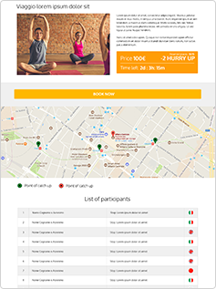 Book Now Travel allows you to buy the program in order to have your platform to promote your events. If you like our web site and the way we promote our event and packages, you can buy a similar one. A team of professionist will set it for you. So you could have: your web site, your personalized url, the pages to present your activity and to promote your private and public event, a page for every event or package that explain the details, your logo in plain view, a content management system to manage your online content.
